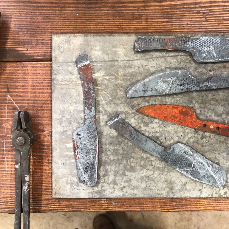 Sometime in 2018, Brady bought a bucket of rust — tools, metal, and miscellaneous junk — at a garage sale and asked what he should make. I (Brody) challenged him to make a knife, and to my surprise, he did. A couple of months later we all signed up for a bladesmithing class with Daniel Collier in Dripping Springs. Our results were rough, but we were hooked.