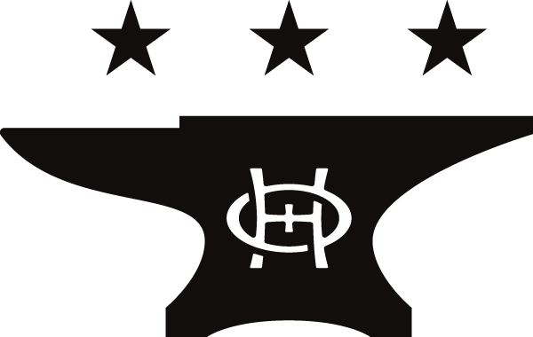 The anvil icon anchors the mark, which is based on Brady’s workhorse, Peter Wright anvil.