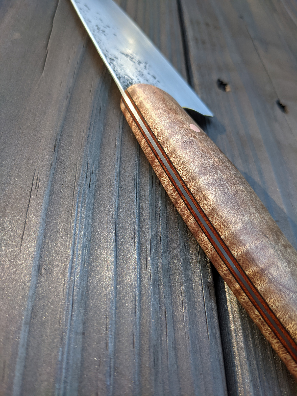- Stabilized curly Bigleaf maple handle