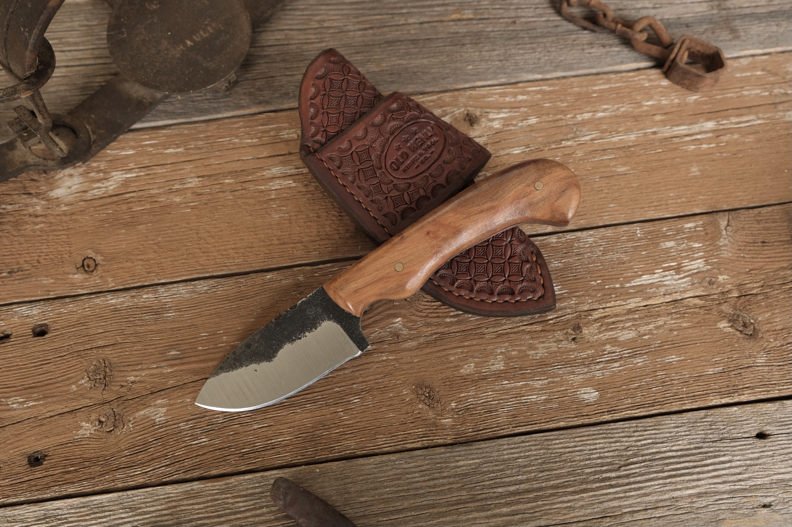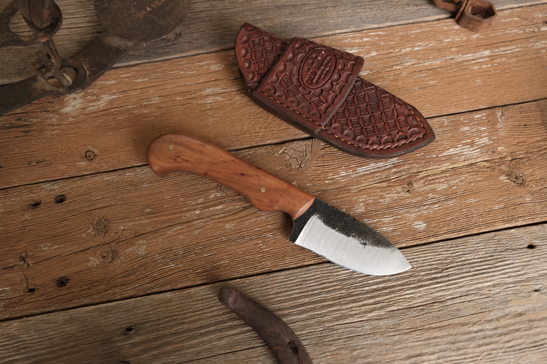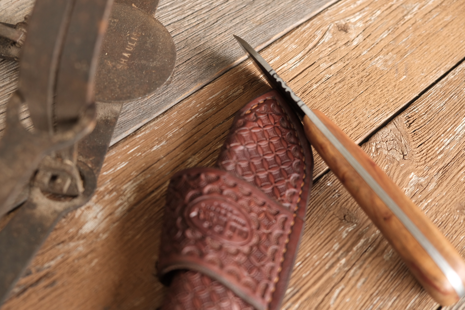 Hand-tooled, horizontal carry sheath made with Hermann Oak leather