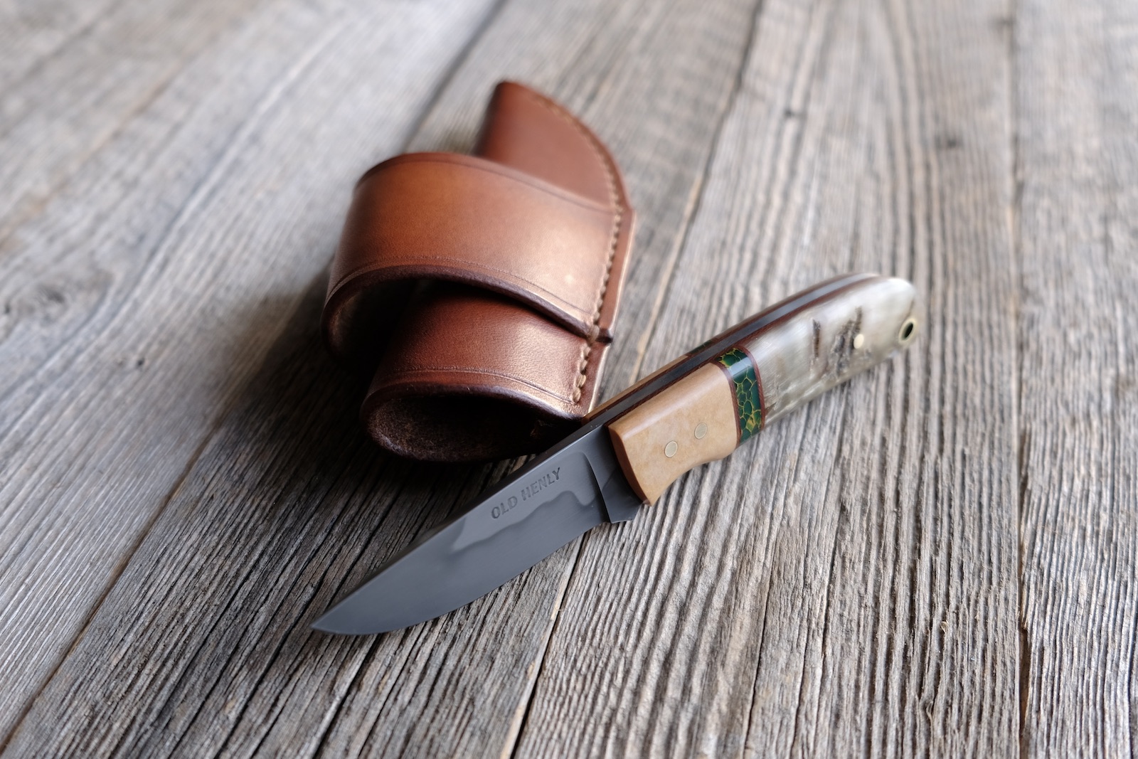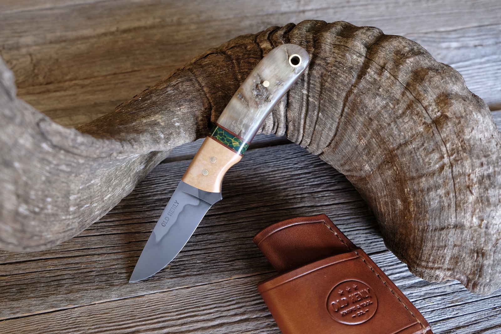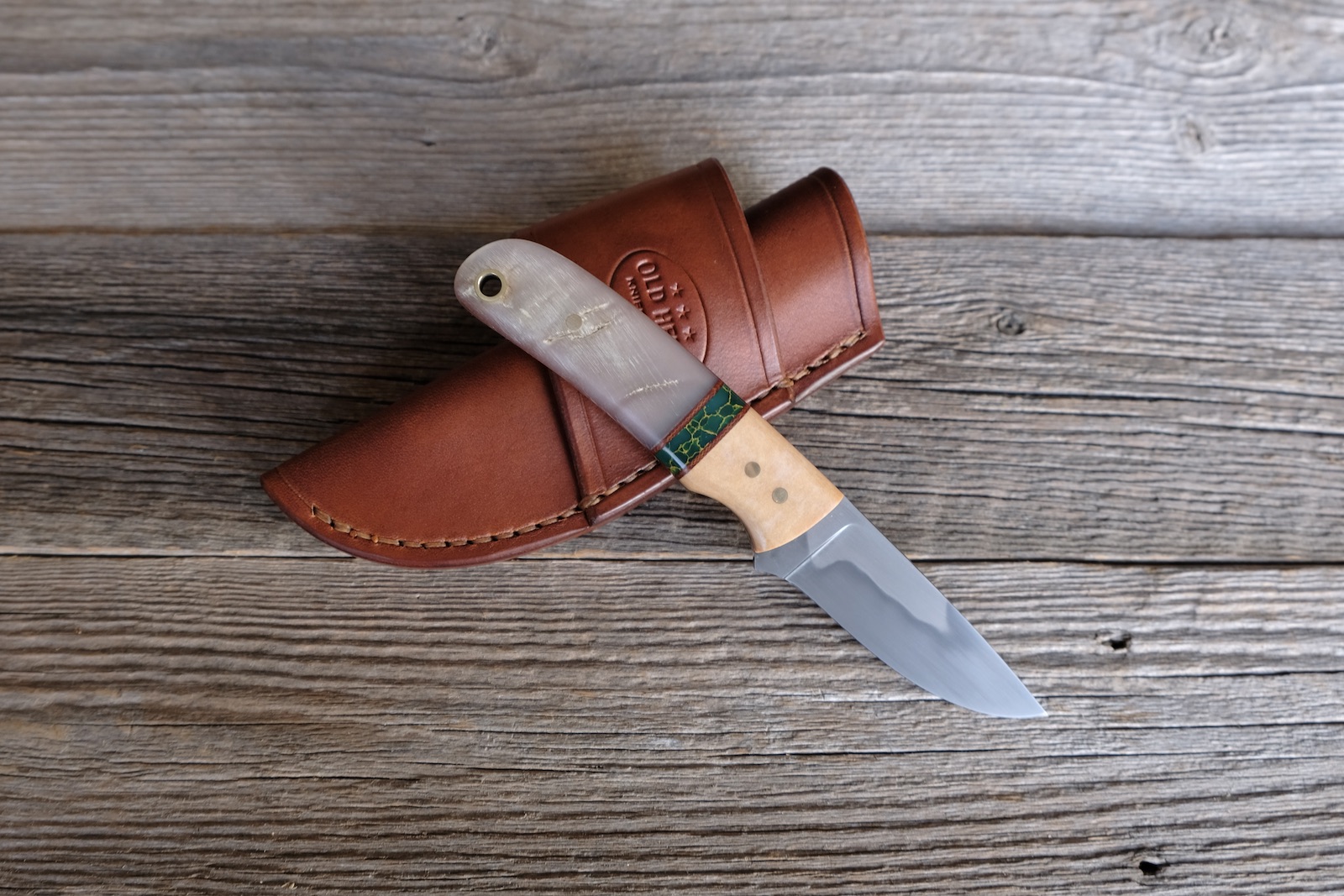 - Handle: Maple Richlite bolster, Arizona Jade spacer, and sheep horn