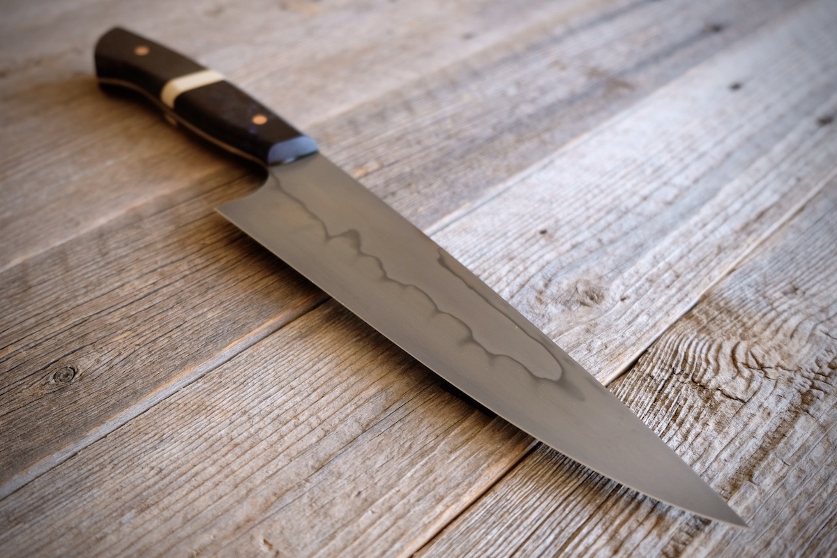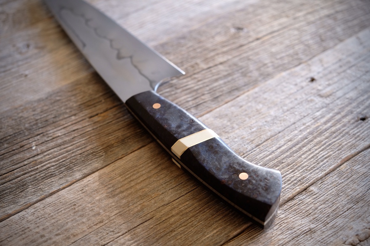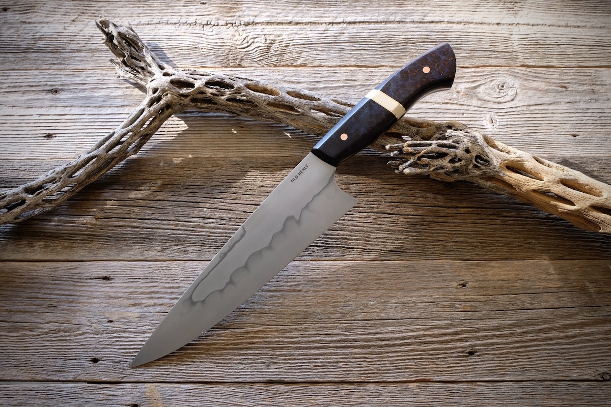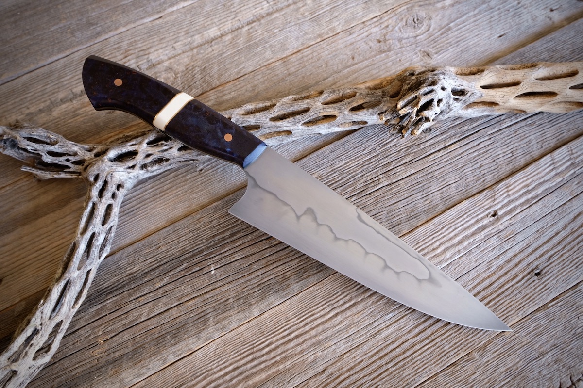 Handle: Midnight blue maple burl, stabilized and dyed in-house