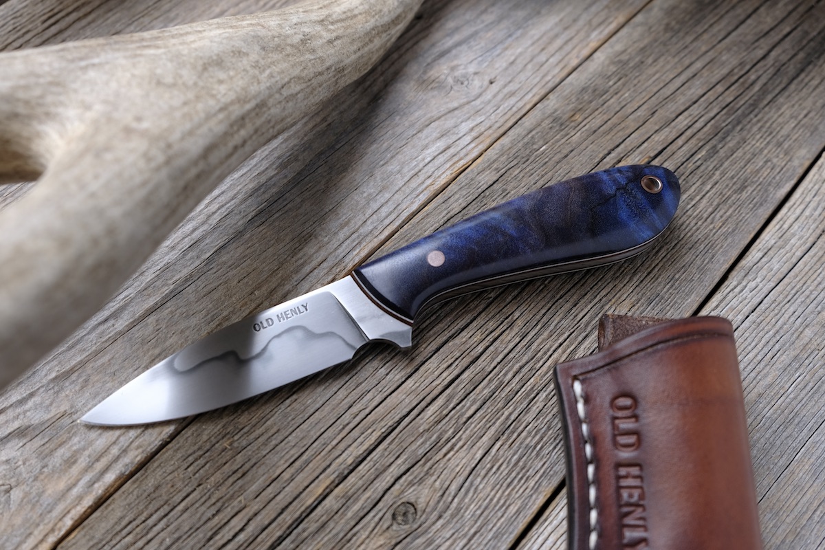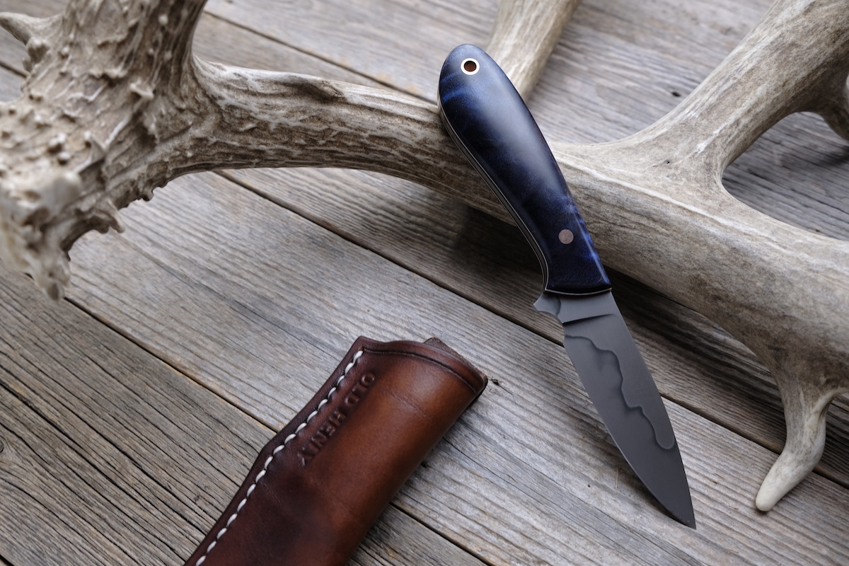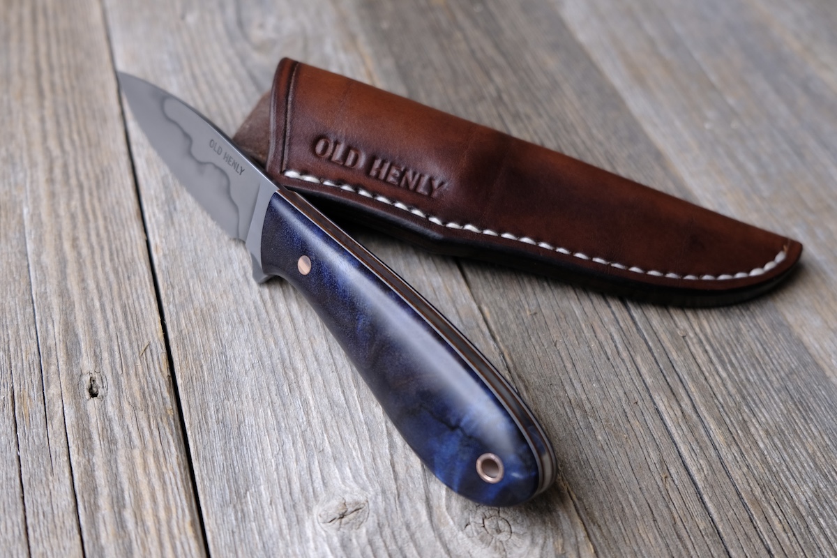 - Handle: Midnight blue maple, stabilized and dyed in-house